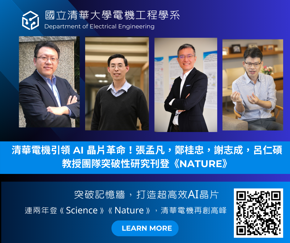 清華大學電機系張孟凡,鄭桂忠,謝志成,呂仁碩教授團隊在人工智慧運算與記憶體內運算技術的研究屢創高峰,繼 2024 年 4 月研究成果獲《Science》刊登後,團隊再度於 2025 年 3 月發表於國際頂尖期刊《Nature》,充分展現其在 IC 設計與人工智慧硬體領域的全球領導地位。這項研究不僅克服了「記憶牆」限制,更進一步推動高效能、低功耗 AI 運算技術的發展,為半導體與人工智慧領域帶來重要突破。