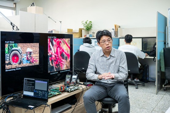 圖說:團隊中研究生林章寶說明如何利用晶片運算提升影片解析與效能